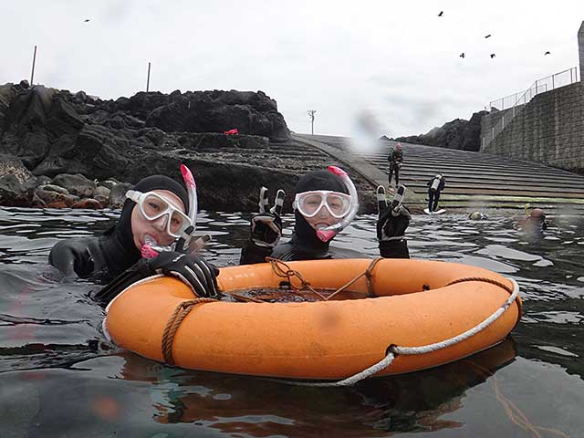 はじめての方にもおすすめの八丈島での体験ダイビング、初心者やブランクでも安心のガイドダイブ、丁寧でしっかりとしたPADI Cカード取得講習など、なによりもお越し下さるみなさまとの出会いを大切している東京から飛行機ですぐの八丈島のダイビングショップです!! [今日も八重根でスノーケリング]