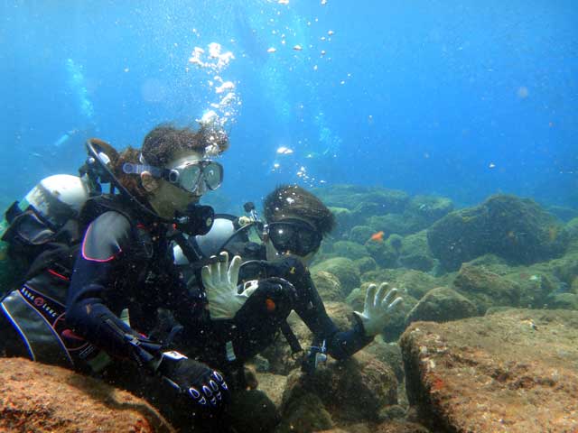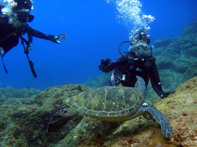 はじめての方にもおすすめの八丈島での体験ダイビング、初心者やブランクでも安心のガイドダイブ、丁寧でしっかりとしたPADI Cカード取得講習など、なによりもお越し下さるみなさまとの出会いを大切している東京から飛行機ですぐの八丈島のダイビングショップです!! [入るうねりは台風で]