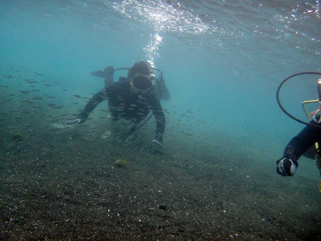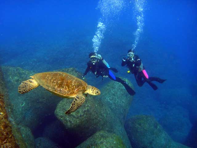 はじめての方にもおすすめの八丈島での体験ダイビング、初心者やブランクでも安心のガイドダイブ、丁寧でしっかりとしたPADI Cカード取得講習など、なによりもお越し下さるみなさまとの出会いを大切している東京から飛行機ですぐの八丈島のダイビングショップです!! [凪いでる底土で1日体験ダイビング]