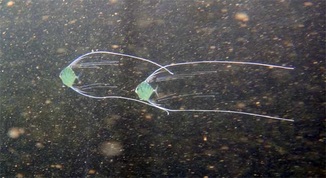 なんだかんだアオウミガメを狙って外海でちゃうと魚を間近でみることは難しいですし、体力的にも大変ですし、不安を抱えて沖にでるより、穏やかなところでのんびり魚とたわむれるのも良いもんです。でも、乗り物酔いしやすいひとは、いくら凪いでいようとも波酔いしたりもしますので酔い止め必須ですけども・・・・・ 動画はスノーケリング中にササッと撮らせて頂いたイトヒキアジのお子さま