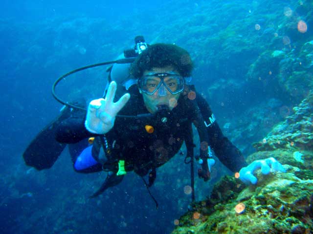はじめての方にもおすすめの八丈島での体験ダイビング、初心者やブランクでも安心のガイドダイブ、丁寧でしっかりとしたPADI Cカード取得講習など、なによりもお越し下さるみなさまとの出会いを大切している東京から飛行機ですぐの八丈島のダイビングショップです!! [台風前の体験ダイビング]