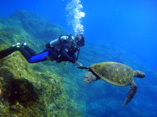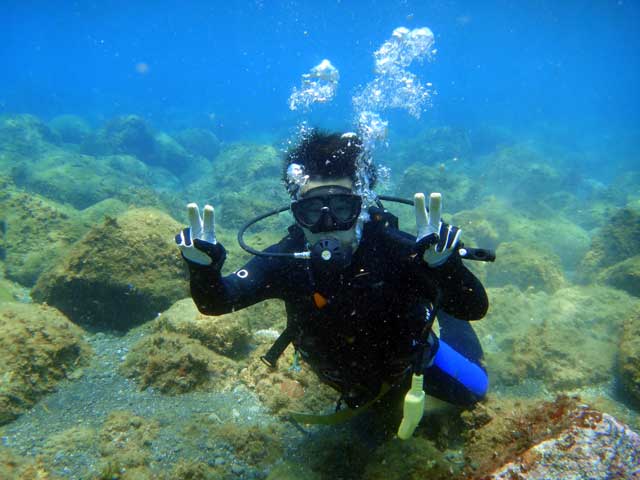 はじめての方にもおすすめの八丈島での体験ダイビング、初心者やブランクでも安心のガイドダイブ、丁寧でしっかりとしたPADI Cカード取得講習など、なによりもお越し下さるみなさまとの出会いを大切している東京から飛行機ですぐの八丈島のダイビングショップです!! [夏を感じる八重根の体験ダイビング]