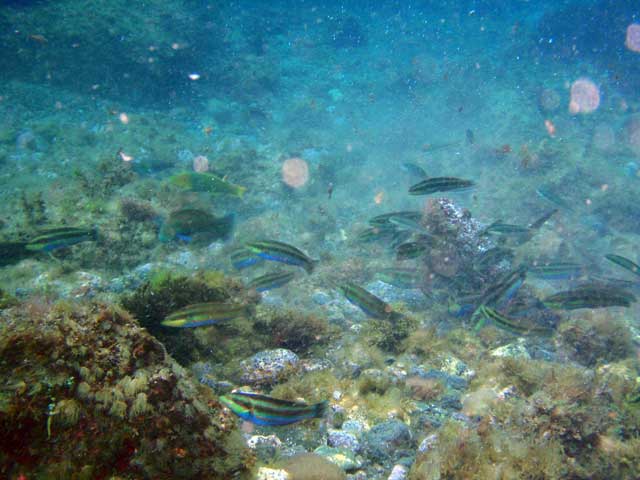 ダイビングは2名ずつだったので、待って頂いている間はスノーケリングで夏の海を満喫して、手軽に体験ダイビングの方々は穏やかなところでゆっくりのんびりベラの仲間に囲まれながらのダイビング。