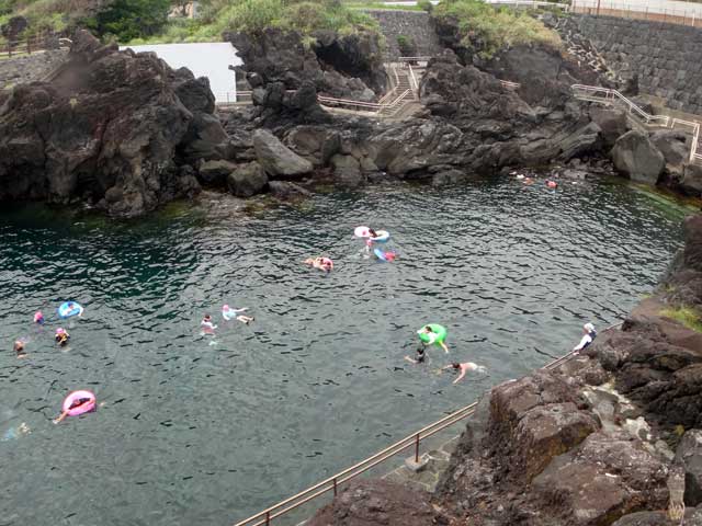 まずは海に慣れて頂くために、うねりは多少入ってきてはおりましたが、穏やかな足のつくタイドプールで魚をみながら練習をして、浅場でしっかり練習もしたんで、みなさん自身もついたのか、パシャつく海でも頑張りたいとのことでしたので、場所を移して足はつきませんが蒼い海とキビナゴがいっぱいの八重根で泳いできました。
