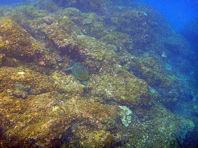 でも、そのおかげで水は綺麗に抜けていて、遠くで泳ぐアオウミガメもしっかり見えたりしておりまして、