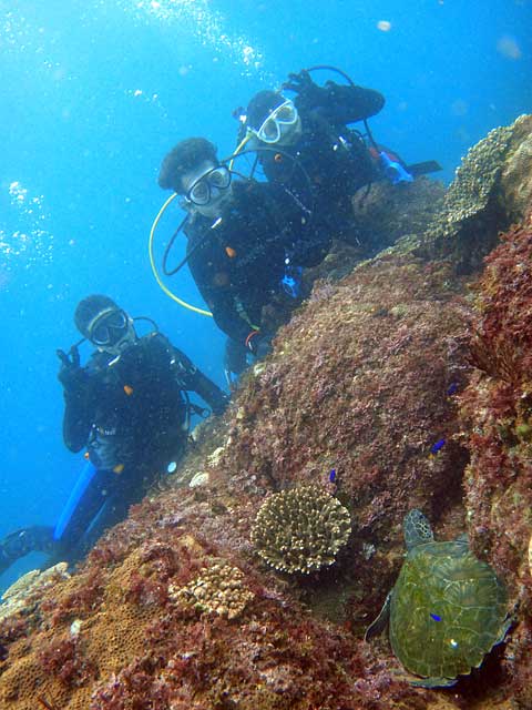 はじめての方にもおすすめの八丈島での体験ダイビング、初心者やブランクでも安心のガイドダイブ、丁寧でしっかりとしたPADI Cカード取得講習など、なによりもお越し下さるみなさまとの出会いを大切している東京から飛行機ですぐの八丈島のダイビングショップです!! [小雨の合間の体験ダイビング]