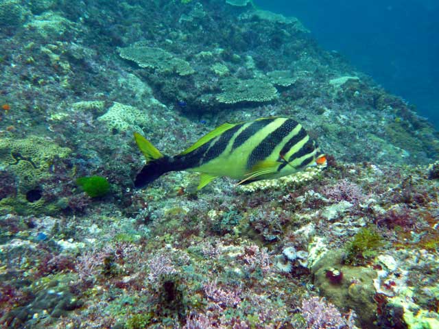 他にもヒレナガカンパチやウミウシの仲間、大きなハマフエフキやトラ柄模様のミギマキなど、空はちょっとどんよりでしたが、八丈島の海を楽しんで頂けました。