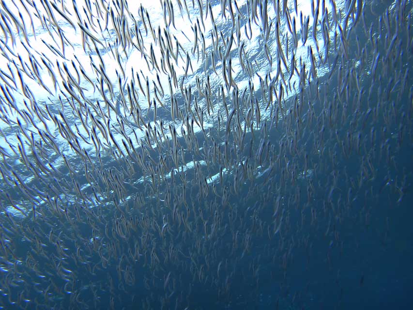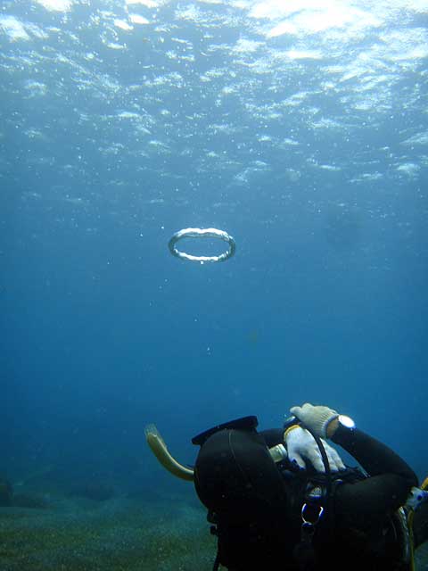 バブルリングも作ってみたり、キビナゴの群れにヒレナガカンパチが突っ込んでいくのも見られたりして。枯れ葉のようなナンヨウツバメダイの子どもも水底付近でフヨフヨしていて、嵐の前に穏やかな海でしっかり海を楽しんで頂けました。