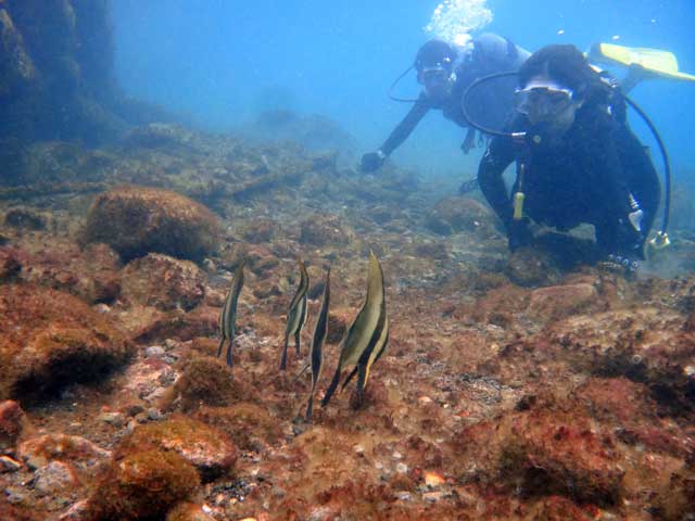 はじめての方にもおすすめの八丈島での体験ダイビング、初心者やブランクでも安心のガイドダイブ、丁寧でしっかりとしたPADI Cカード取得講習など、なによりもお越し下さるみなさまとの出会いを大切している東京から飛行機ですぐの八丈島のダイビングショップです!! [嵐の前に体験ダイビング]