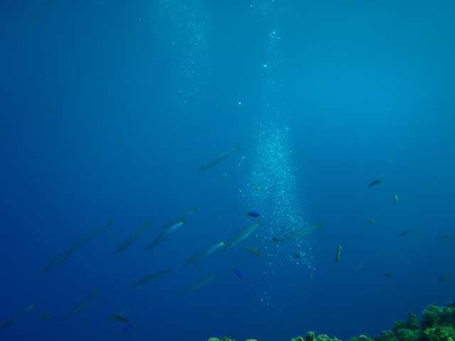 おかげで場所を変えてのダイビングは余裕な感じで、ヒレナガカンパチの群れやアカカマスの群れ、ソラスズメダイやクロユリハゼ、アオウミガメにも出会えちゃいました。