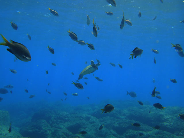 本日はCカードをお持ちの方がいらっしゃいましたので、しっかりと説明はさせて頂き、サクッと練習して海で楽しむ時間を長くとる感じで、沖まで出れば蒼い海に包まれて、大きなハマフエフキや、底土には珍しくアオウミガメもたくさん見られたり、