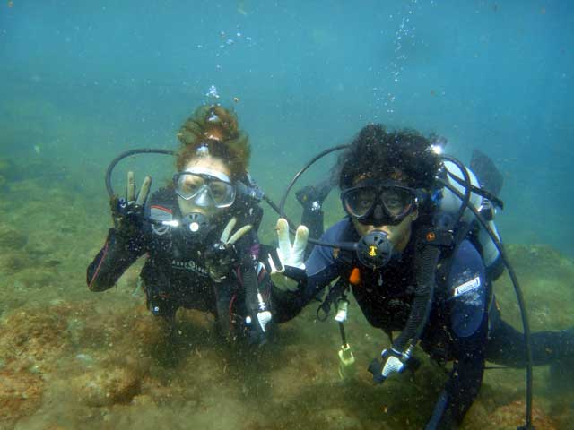 あとは体験ダイビング。ショップで一通り説明をさせて頂き、足のつくところで間近で魚をみながら練習をして、海に慣れてきたところで、場所を移して水の綺麗なナズマドで体験ダイビングです。