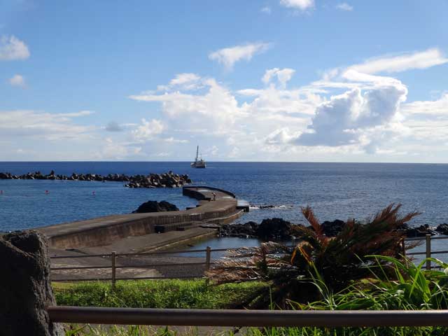 日差しも強くて気温も上がり暑い夏の一日となっていた今日の八丈島。海の方は、南西側はうねりが大きくなっており、北東側は凪いでいました。