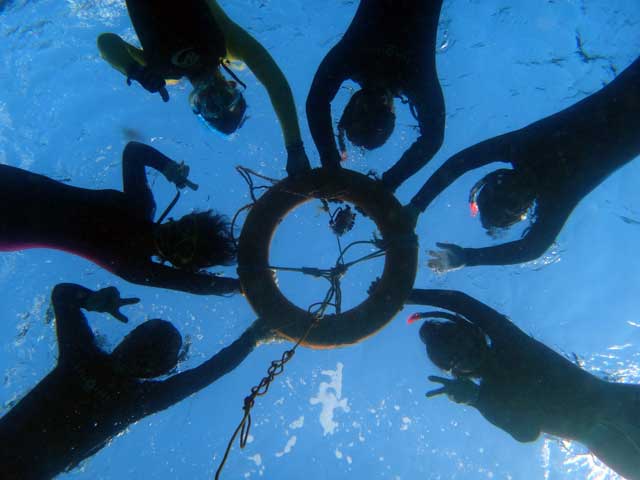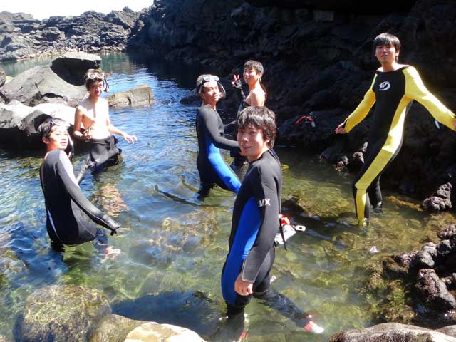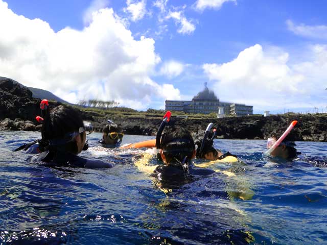 はじめての方にもおすすめの八丈島での体験ダイビング、初心者やブランクでも安心のガイドダイブ、丁寧でしっかりとしたPADI Cカード取得講習など、なによりもお越し下さるみなさまとの出会いを大切している東京から飛行機ですぐの八丈島のダイビングショップです!! [覗いた下には蒼い海]