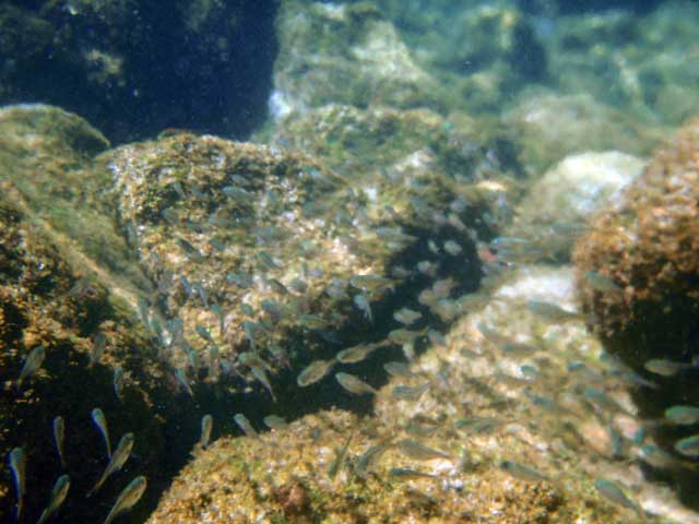 どこもキビナゴがワシャワシャ入っておりますが、人ごみ避けて午前中はアライケです。真水がわき出す湾内はとっても穏やかで小さな魚もたくさんで、沖にでれば蒼い海が広がります。キラキラ光るキビナゴや、青が綺麗なソラスズメダイ、少し泳いで沖のクマノミなんかも見に行ったりもして、