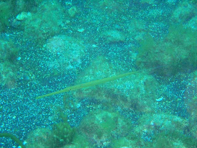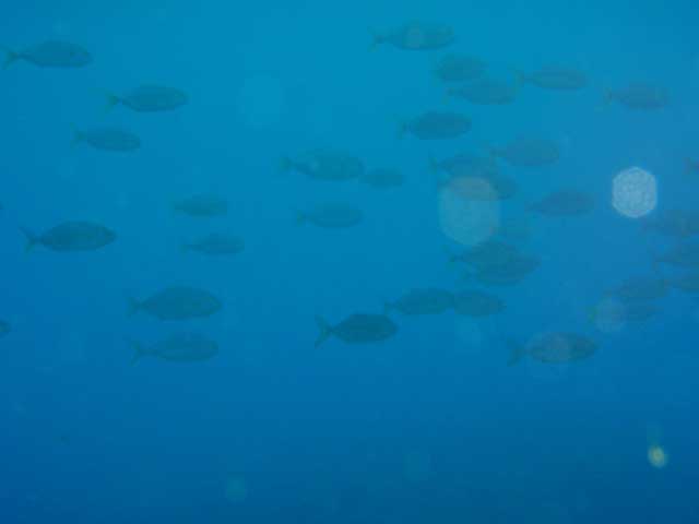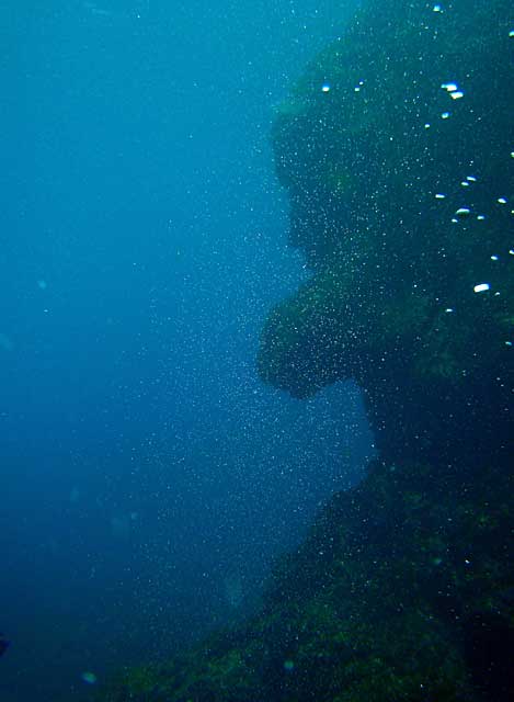アライケではキビナゴが入っていて、小さいながらもヒレナガカンパチの群れも周ってきてました。昨年に引き続き来て頂いているお客様でしたので、体験ダイビングも慣れたもので、最後の方にはかなり自由に泳いげるようになりました。透明度がよいので人面岩もくっきりです。