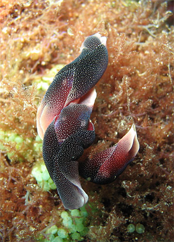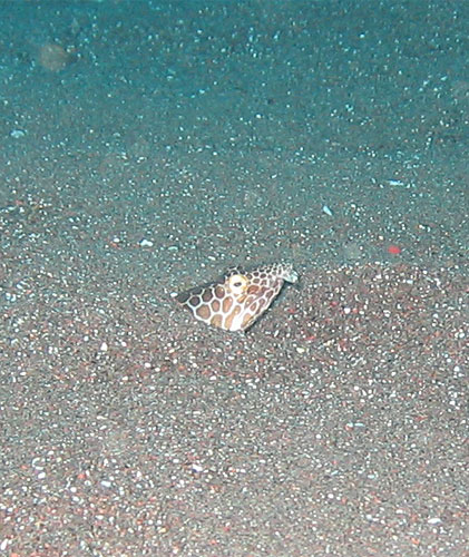 入ってすぐの湾内には、アカカマスが群れていて数匹で産卵っぽい動きをみせており、根上にはコナユキツバメガイが集まって団子みたいになってました。砂地ではモンガラドオシがウネウネ泳いでいたので、泳いでいるところを撮ろうと近寄ったら砂に潜られてしまいました。しかし、尻尾から実に器用に砂に潜るもんだ。アーチの下には大きなニセゴイシウツボが顔出して、口をパクパクさせてます。アオリイカの卵は数も減ってなんだか茶色くなっており、小さな愛らしいイカの子ども達があちこちで見られます。