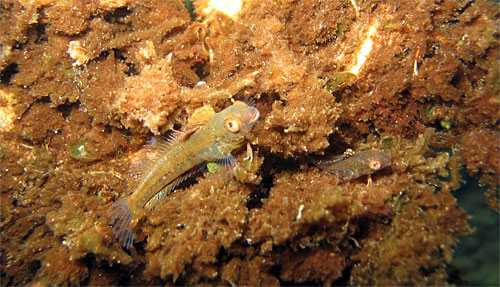 最後上がる前に湾内のロープを何気なしに眺めていたら、ニジギンポに「何みてんだこのやろう!!」と言わんばかりにメチャメチャ見てたので、負けずとフラッシュ浴びせてやりました。