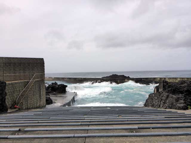 風は強いが雨はあまり降ってはこないで蒸し暑い感じもしていた今日八丈島。海の方は、南西側の台風うねり、北東側は風波とうねりで荒れておりました。
