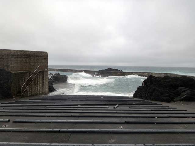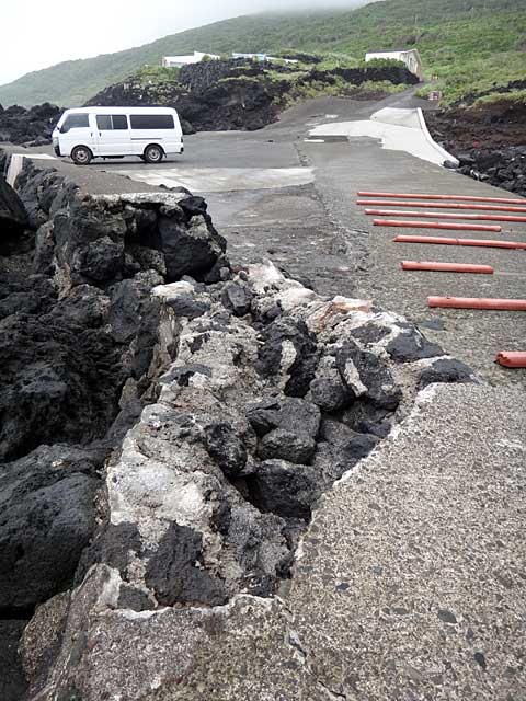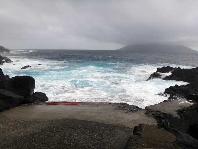ナズマドの駐車場も大きな岩が崩れていたり、車をいつも止めるところの先のコンクリもぶち壊されていたり、南西側はかなりやられておりましたが、北東側はうねりは入ってはいるものの底土はペッタリ凪いでいたりもしています。そして飛行機は今日も全便欠航、もちろんこんな海況ですし定期船も欠航となっておりました。