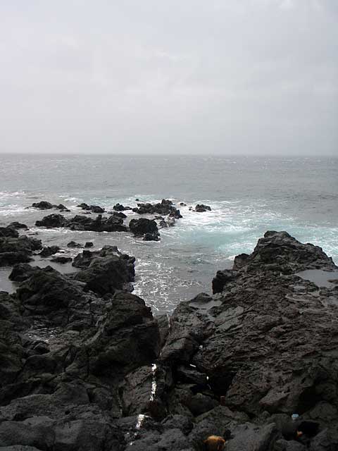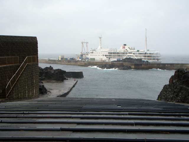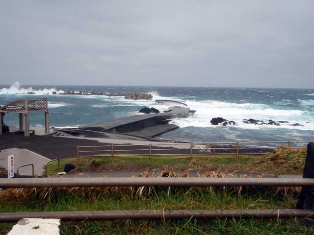 降る雨冷たく風も強くて嵐のような一日となっていた今日の八丈島。海の方は、北東側はバッシャンバッシャン、南西側はうねりはあるものの落ち着いていました。