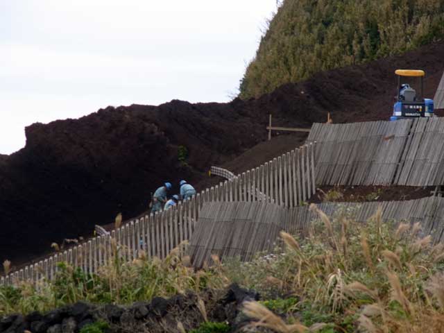 八丈富士のふれあい牧場でたくさんの牛とたわむれ、スーパー巡って島寿司買って黒砂のぼって、グルッと島を周ってきました。黒砂では砂が流れ落ちるのを防ぐためにか杭を打つ作業している人たちがいたりして、十年前くらいはまだまだ砂も多かったのですがどんどん浸食されてしまってますね。そのうち黒砂なくなりそう・・・・・