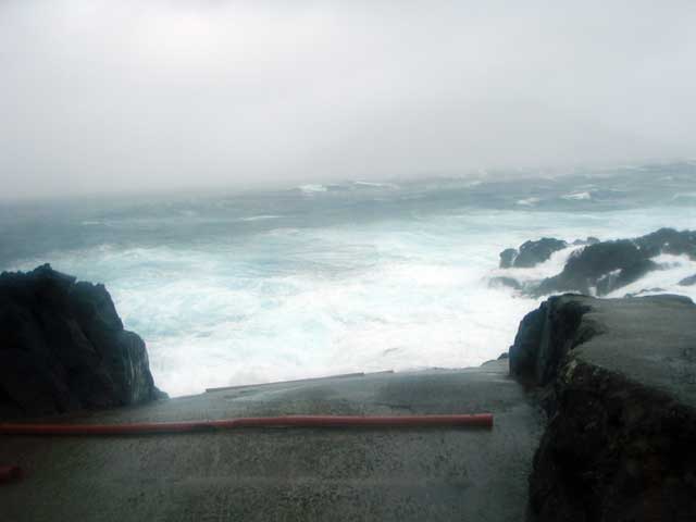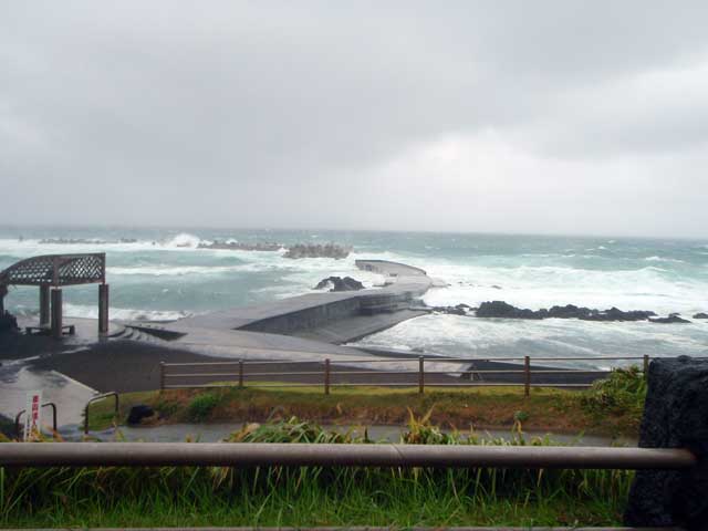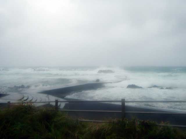台風近づき大荒れの一日となっていた今日の八丈島。海の方は、南西側は風裏になりそれほど荒れてはいませんが、北東側はグシャグシャでした。