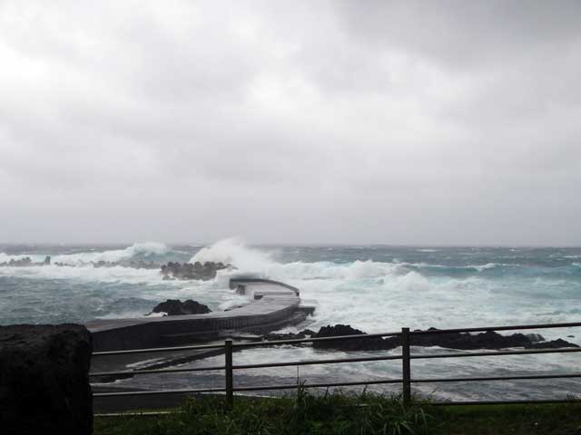 台風18号の直撃はないものの近づいてはきているので天気は大荒れ、海も大荒れ。定期船も飛行機も全便欠航となり、行くのも出るのもできない状態となっております。