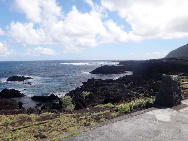 すっきり晴れるが北風強く少し涼しい一日となっていた今日の八丈島。海の方は、北東側は風波でバシャバシャ、南西側は台風のうねりでグシャグシャでした。