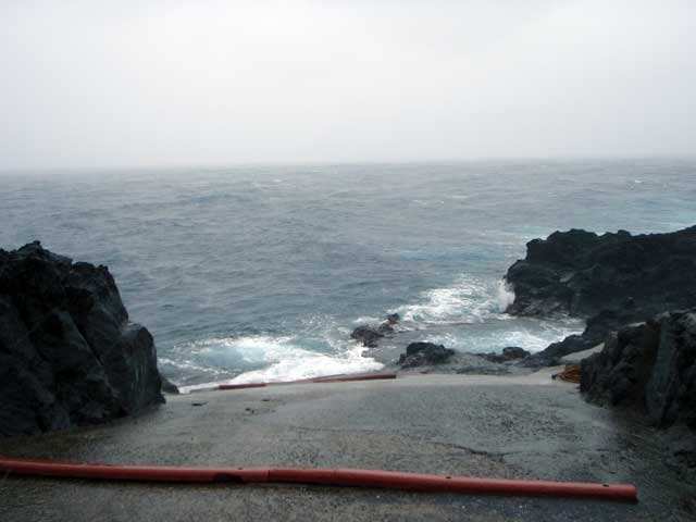 飽きることなく降り続く大粒の雨で大荒れの一日となっていた今日の八丈島。海の方は、南西側には微妙なうねりが入っていますが落ち着いておりました。