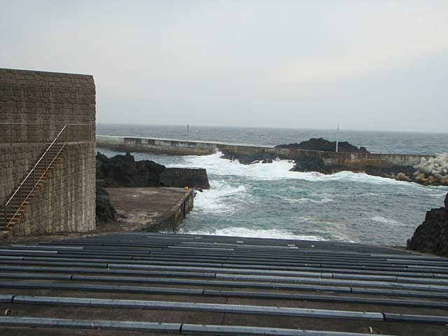 海の方は、南西側は風で大きくなったうねりが打ち寄せ真っ白になっていました。