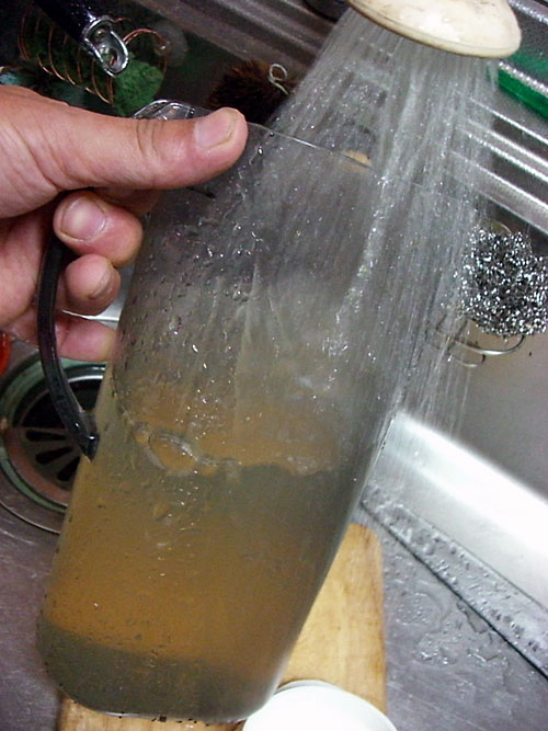 そんな、海の色が青くぬけてきたというのに、なんだこの水の色は・・・ さすがにこれを飲む気にはなれませんし、こんなん使って料理とかはできません。