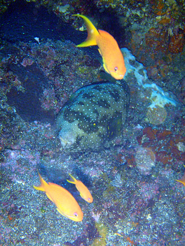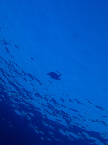 ほかにはサザナミフグがぽてっと根の影でホンソメワケベラのちびにクリーニングされてたり、ムロアジの群れが通りすぎたり、アオウミガメが水面付近で息継ぎをしていたり、ウツボがウネウネ泳いでいたりと・・・