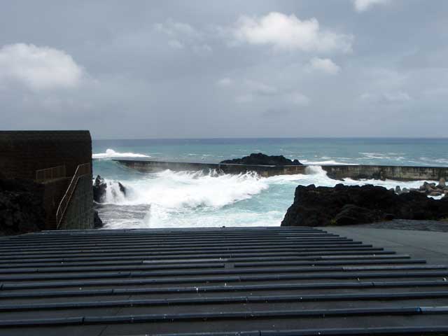 今日は朝は南西側は大きな波が押し寄せうねりが酷くなっておりましたが、北東からの風が強まるにつれ少しずつ落ち着いてきております。逆に北東側は大荒れになってきているんですけども・・・・・