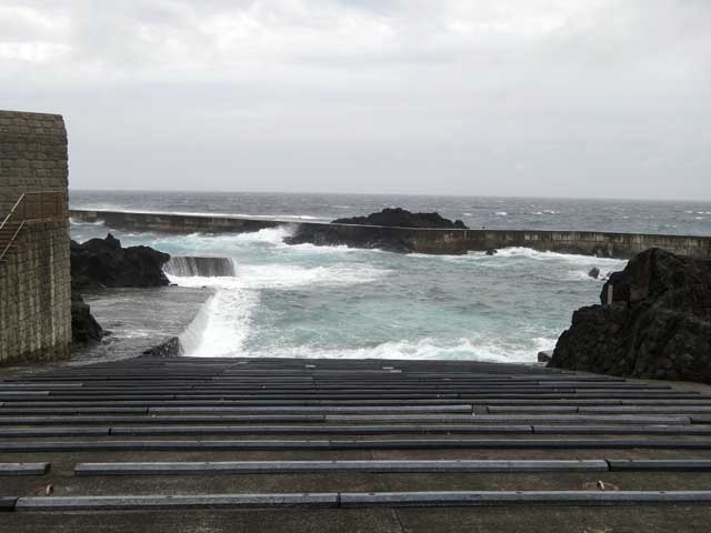 曇った空は時折明るくなるものの風も強まり嵐の様相をみせてきていた今日の八丈島。海の方は、南西側は午後から沖に白波たってきてうねりも大きくなってきていました。