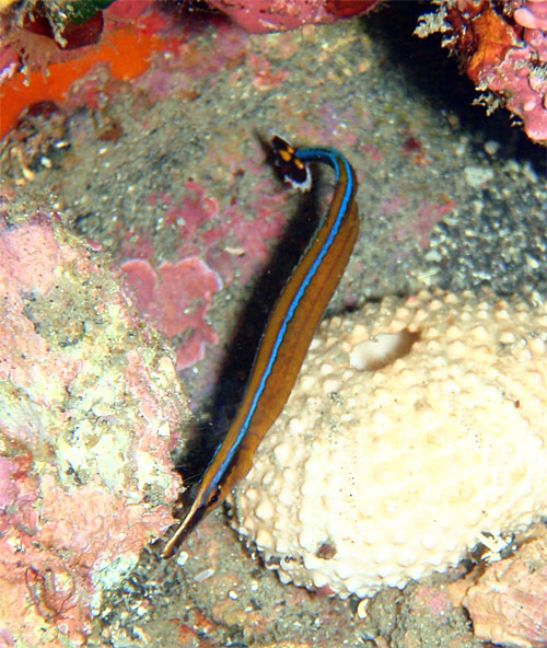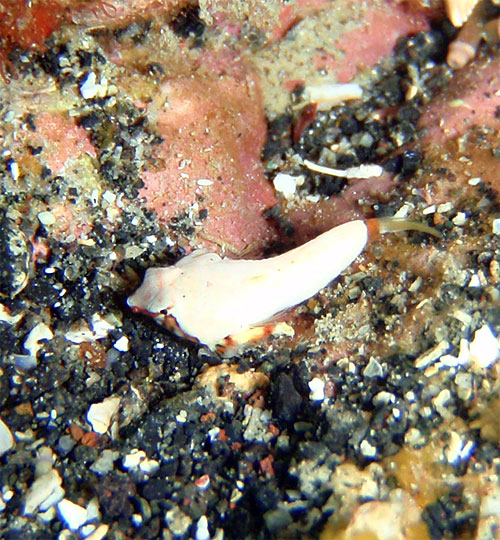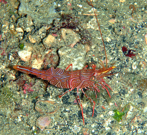 穴を覗くと大きいのから小さいのまでいるノコギリヨウジ、中にはお腹が大きくなってるやつも見られました。ひょいひょいっと小石の上を移動する姿がとっても愛らしいコウワンテグリも、大小ペアでおりました。岩の隙間などにワラワラといるサラサエビ、それによく似た大きなやつが一匹でどーんと表にでていたので、よ~く見てみるとお尻に黒い点があるヤイトサラサエビでした。