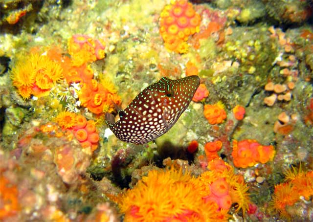 あとは八重根にもいってみて、とっても小さなヒメヒラタカエルアンコウにシボリキンチャクフグ、マツカサウオの子どもに、ナンヨウカイワリなんかもいたりして。