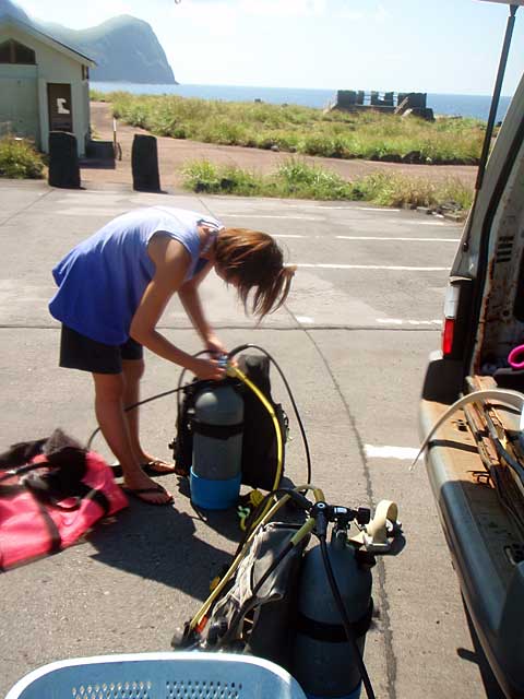 講習もいよいよ大詰め、海にも器材のセッティングにもかなり慣れてきて、本日も無事終了。残すところはあと一本で立派なダイバー誕生です。