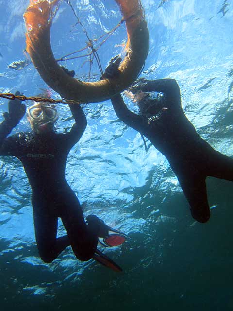 手前側は冷たい水もなく暖かな感じで潮位の低い時間帯はうねりもそんなに入ってこなくて、なかなか快適な底土で気持ちの良い青空の下での講習で