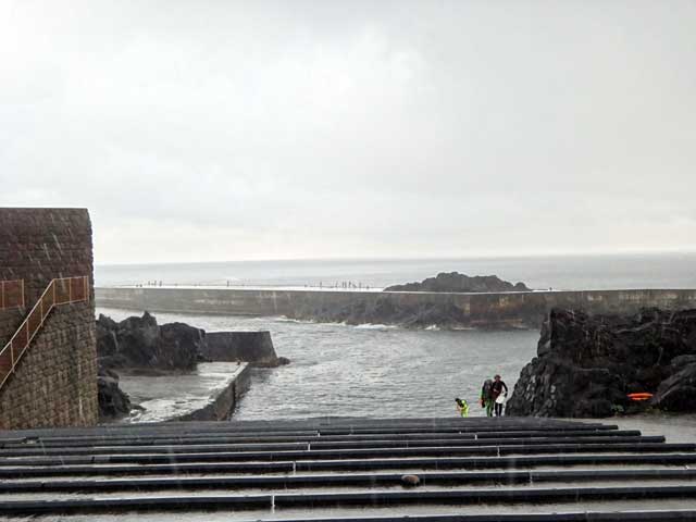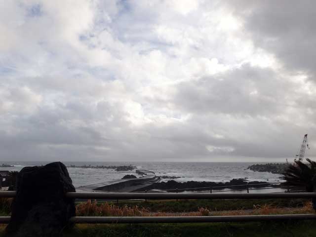 降る雨強く曇りがちだが時間とともに明るい空になってきていた今日の八丈島。海の方は、北東側はバシャバシャで南西側は台風うねりが入ってきていました。