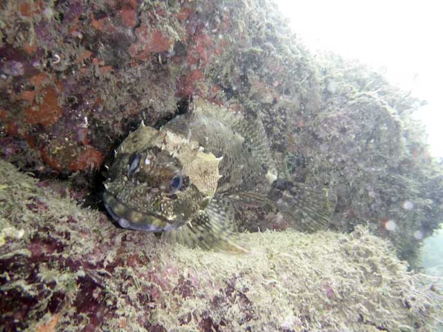 あとは八重根にもいってみて、とっても小さなヒメヒラタカエルアンコウにシボリキンチャクフグ、マツカサウオの子どもに、ナンヨウカイワリなんかもいたりして。