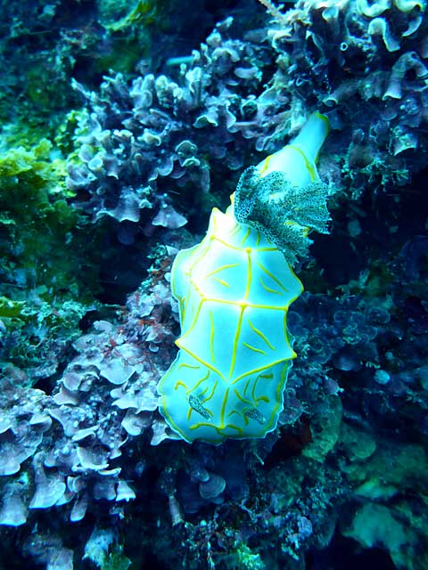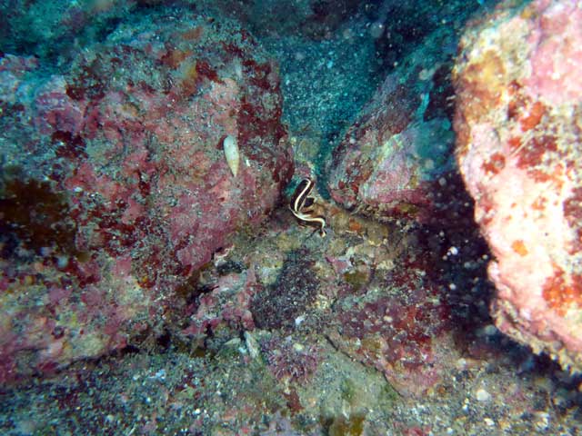 昨日はちょっと白濁りもしていましたが、今日の底土は蒼い海になっていたりもして、ムロアジがパラパラ周ってきていたり、ミカドウミウシやキスジカンテンウミウシ、ヒレグロコショウダイなんかもいて、いろいろな海の生き物を見ながらの講習で、やることはたくさんありますが楽しんで頂けた様子。