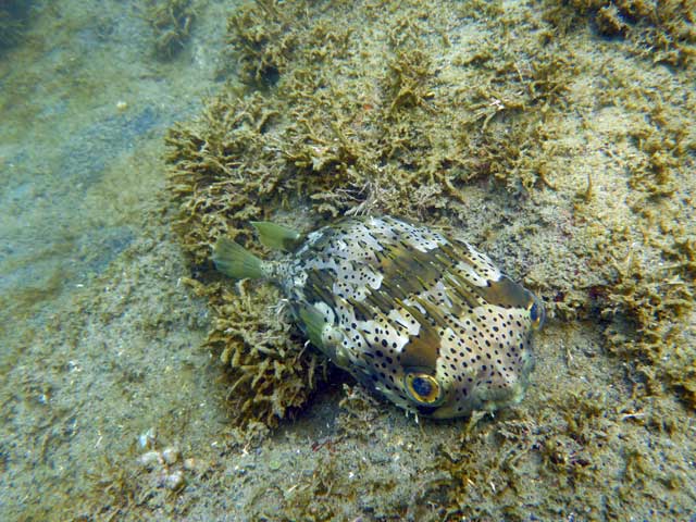 逆に八重根は見た目程うねりもなく、若干の白濁りはあるものの、こちらもキビナゴたくさんで、アオウミガメもチョロチョロしており、チョウチョウウオなどのちっちゃな子ども達もたくさんでした。