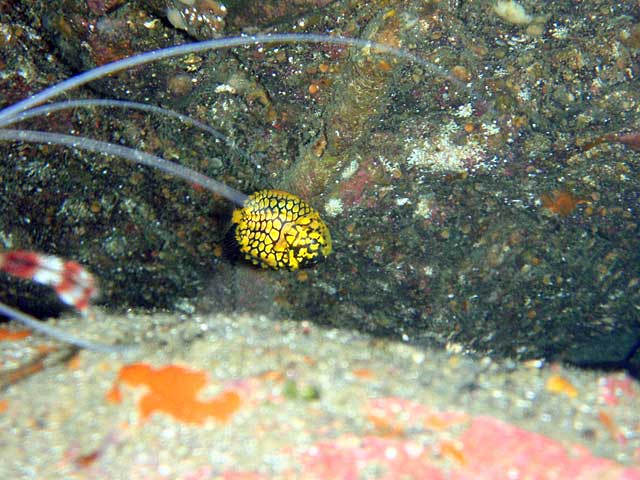 クマノミ達も低水温に耐え抜いて元気にイソギンチャクの中へ出たり入ったり。穴のおく~の方に500円玉くらいの大きさのマツカサウオの子どもを発見。食べられずに順調に育って貰いたいもんです。浅場にはダイダイウミウシなんかもいたりして、水温低かった感がある感じですが、心の底から待ち望んだ暖かな海が戻って参りました。