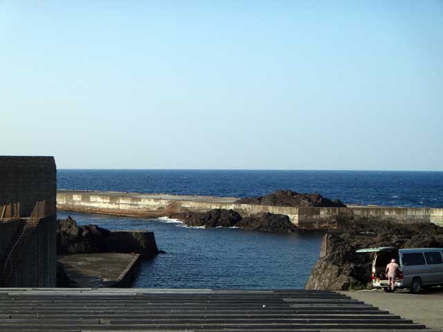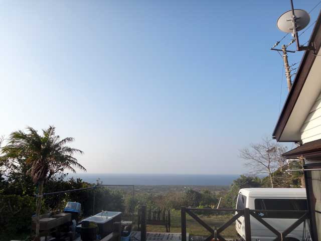 すっきり晴れて暖かいがなんとなく霞がかった青空となっていた今日の八丈島。海の方は、うねりは微妙に残ってますが概ね凪いでる感じでした。
