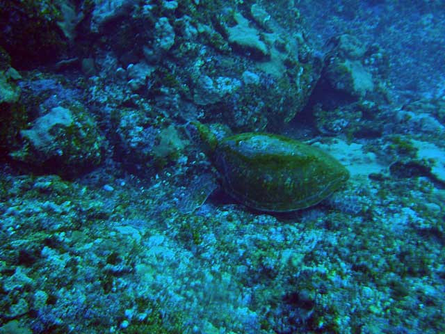 そんな低水温でどうにも魚たちの元気がありません。普段はすばしっこいアブラヤッコも傷ついてるせいもあるのかフラフラしてましたし、タテジマキンチャクダイも生きるのに必死で、泳ぐというよりたたずむ感じ、ユウゼンも砂の上に横たわって、じっくり観察できますがなんだかかわいそう。アオウミガメも小さいのが一匹だけでした。