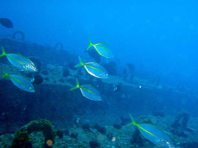 台風通過とともに水温・透明度が上がり、キビナゴわしゃわしゃの海が戻ってきました。アオウミガメたちも元気でたくさんみられ、ヒレナガカンパチ、ツムブリ、ナンヨウカイワリ、ムロアジが周ってきて、本格的に黒潮の海復活といった感じです。