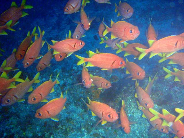 ただ、沖からなんだか冷たくて濁りのない水が上がってきて、大物が来そうな予感満点でしたが、残念ながら遭遇できず・・・ キンギョハナダイ、キホシスズメダイ、アマミスズメダイは群まくりですけども・・・