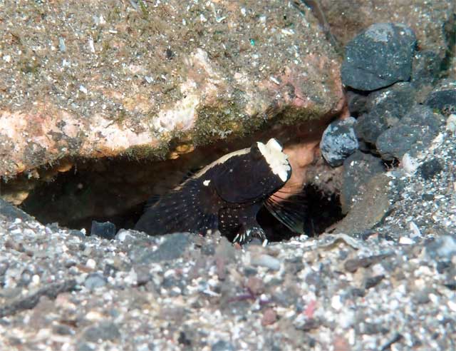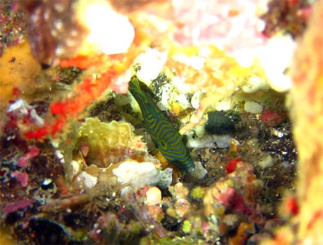 浅場の岩の割れ目には、サザナミヤッコの小さいやつや、湾内の水面付近には、ゴミにまぎれてアオリイカがたくさんいたり、ムロアジが周ってきていたり、ほかにもフリソデエビにキンチャクガニ、シロオビハゼもおりました。