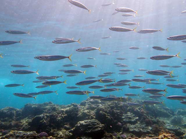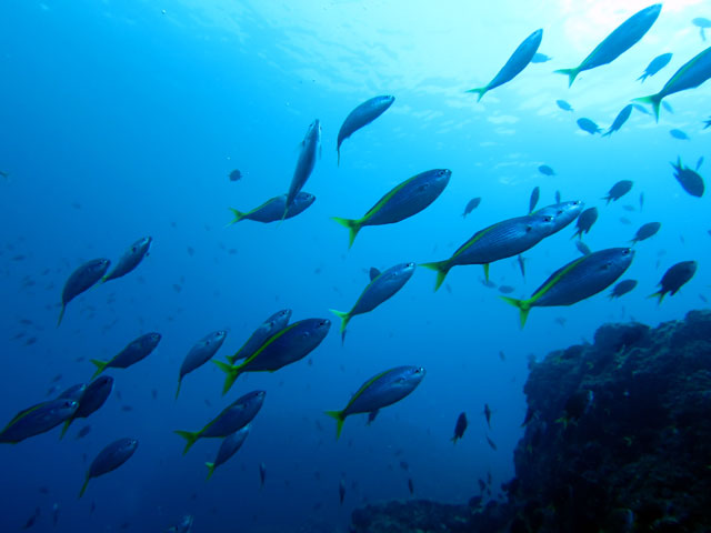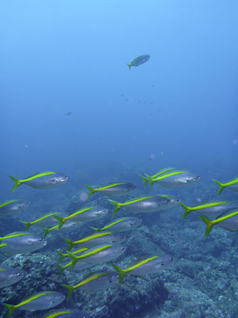 水面付近はパシャつくものの魚もたくさんで蒼く抜けた気持よい海が広がっておりました。